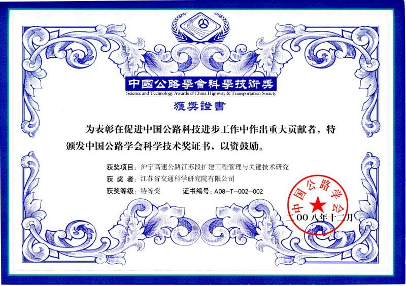 滬寧高速公路江蘇段擴建工程管理與關鍵技術研究特等獎